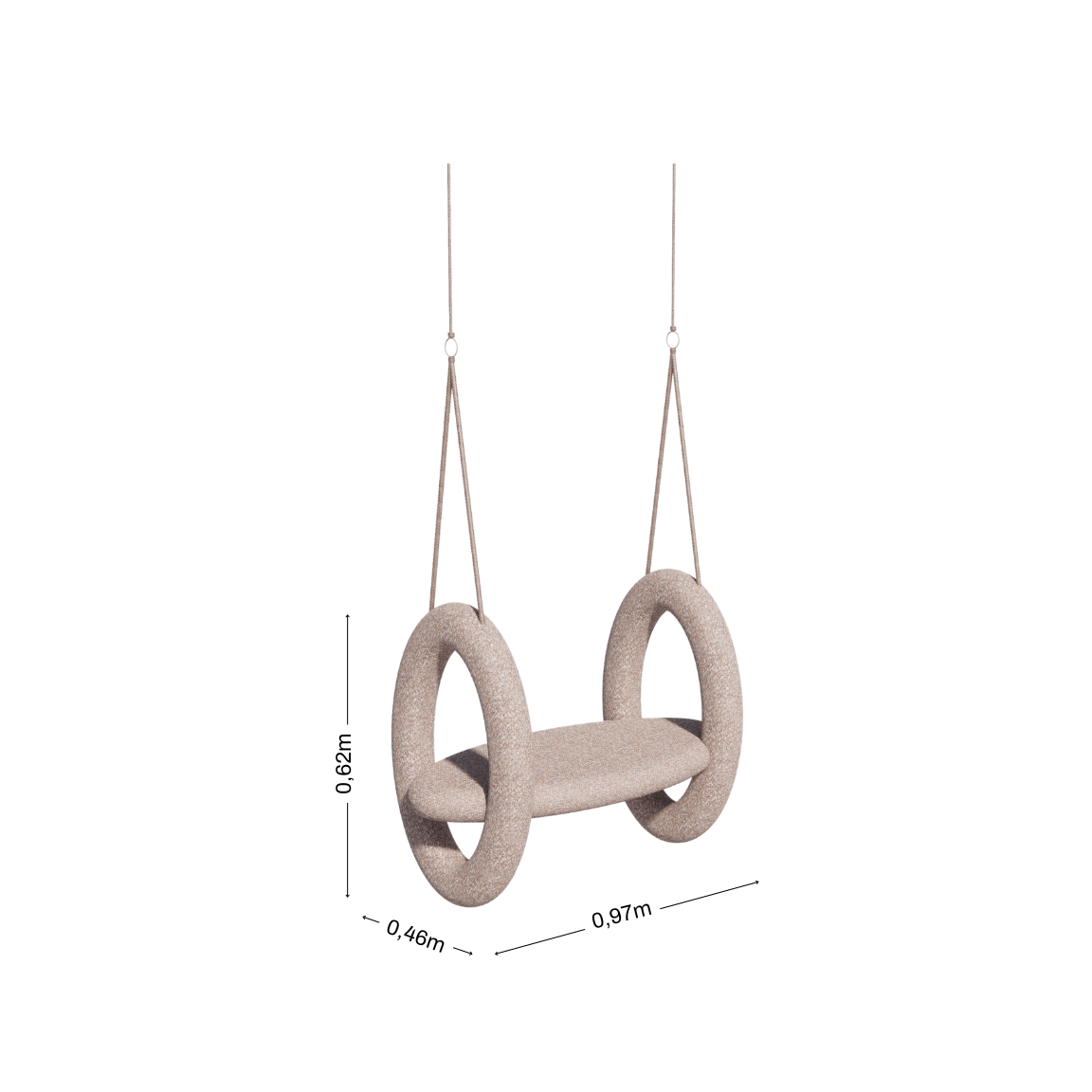 O balanço acompanha 4 pontas de corda de 2,5m de comprimento para amarração – Teto/Pergolado;