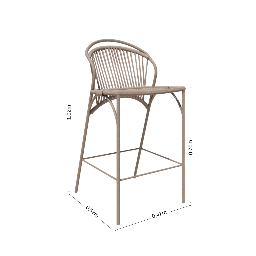 Com traços contemporâneos que harmonizam o decor, a leveza do alumínio, aliada aos trançados da corda náutica, garantem durabilidade, conforto e resistência para sua área gourmet, ou externa.