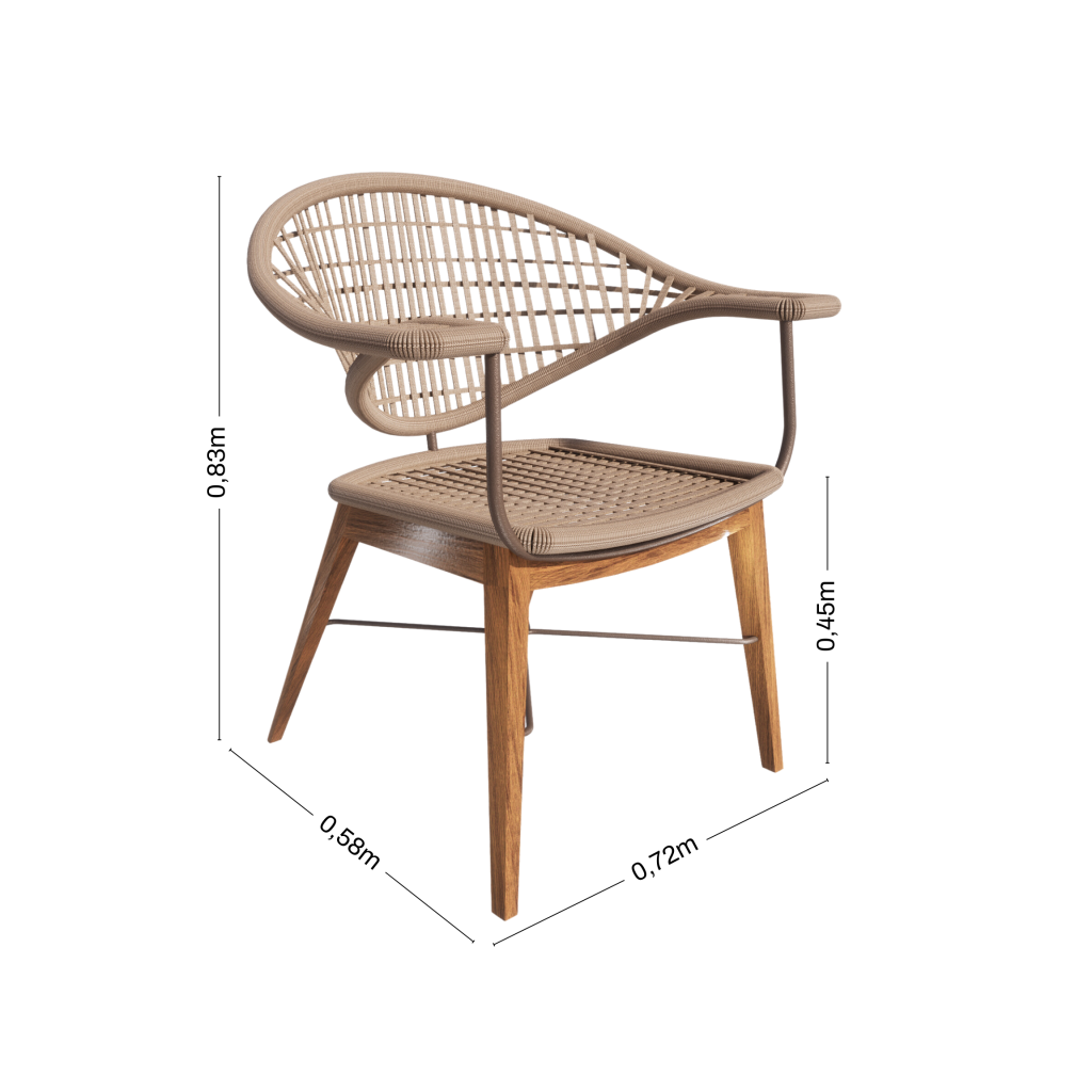 A cadeira Abba é feita em corda náutica, com suas curvas, contornos e misturas que nos garantiram o selo BEST IN SHOW. O encosto e os braços se tornam uma peça única, deixando a cadeira com o conforto ideal para o apoio das costas e dos braços. Nº da patente: BR302021002502-7