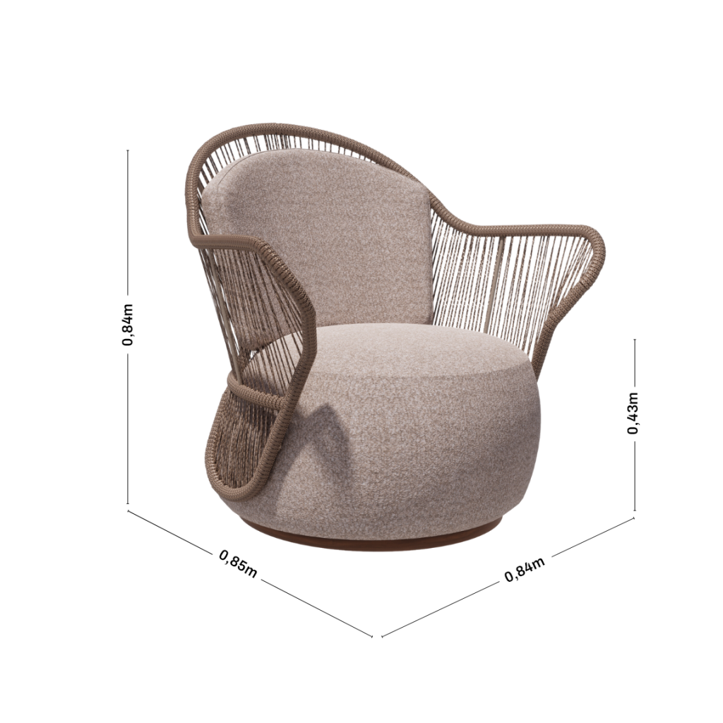 Inspirada nas sutilezas da alma humana e na forma graciosa de uma harpa, suas curvas fluidas e o encosto em cordas entrelaçadas evocam as cordas do instrumento musical, criando uma sensação de harmonia visual e tátil. Ao sentar-se nela, o corpo recebe um abraço suave que convida à reflexão e ao descanso, dissipando as preocupações do dia a dia. Ideal para momentos de leitura ou relaxamento, a poltrona Harpa transforma qualquer espaço em um ambiente de serenidade e inspiração, onde cada momento se torna uma nota na sinfonia da vida.